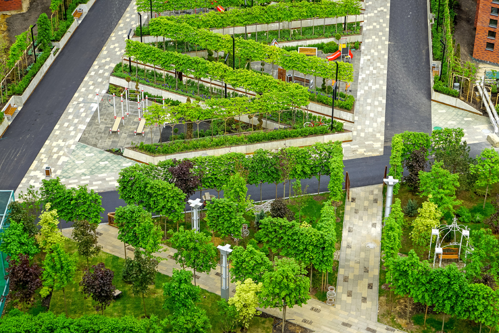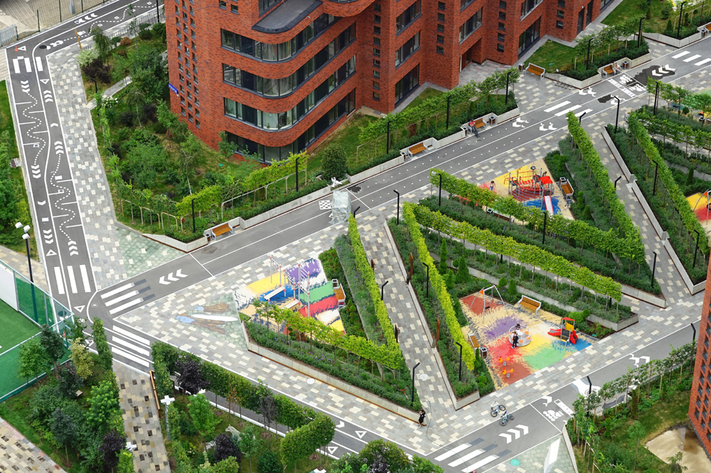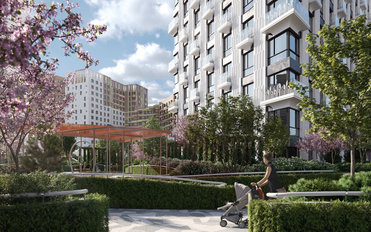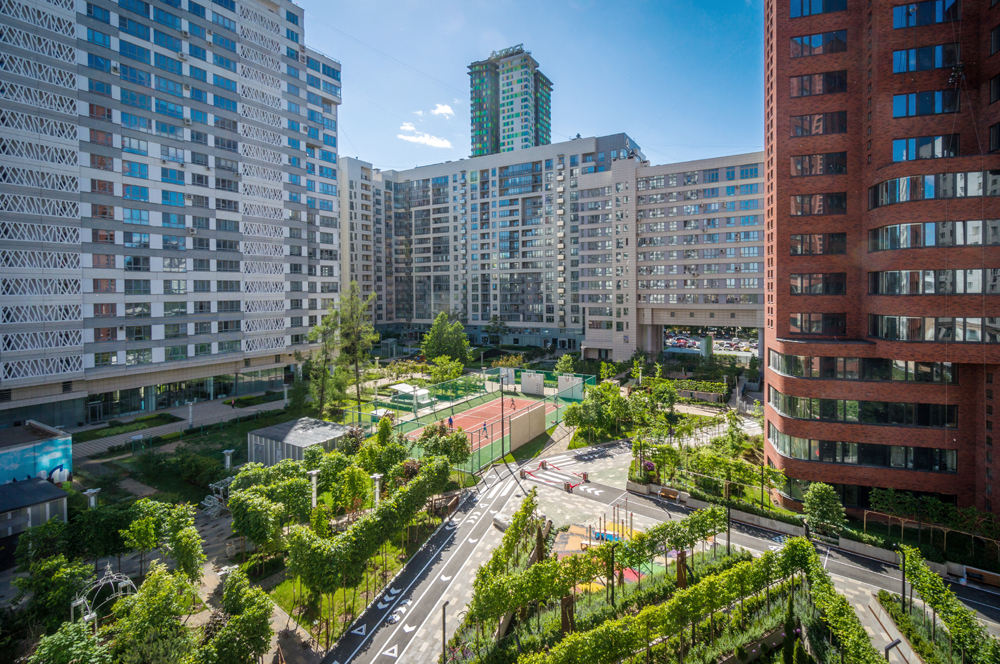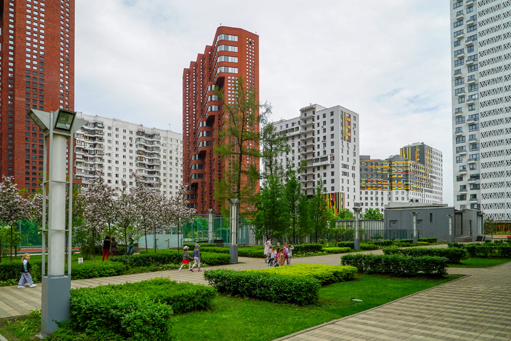 16 разновысотных жилых зданий от 10 до 30 этажей, с различной внешней отделкой фасадов, для которой используется и клинкерный кирпич и керамическая плитка, и декоративный бетон. Дома оборудованы системами пожаротушение и кондиционирования.