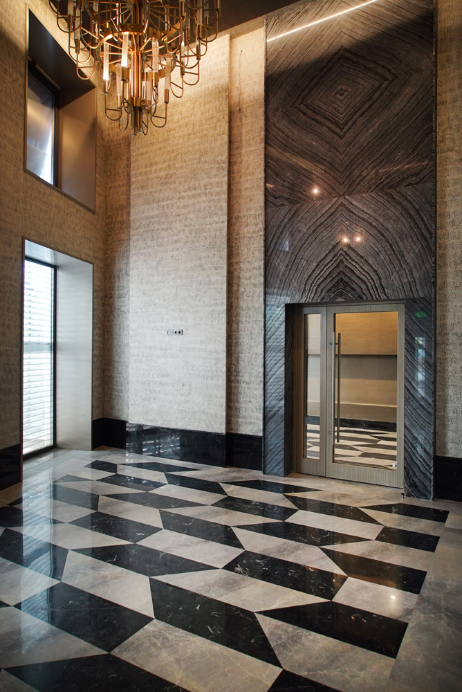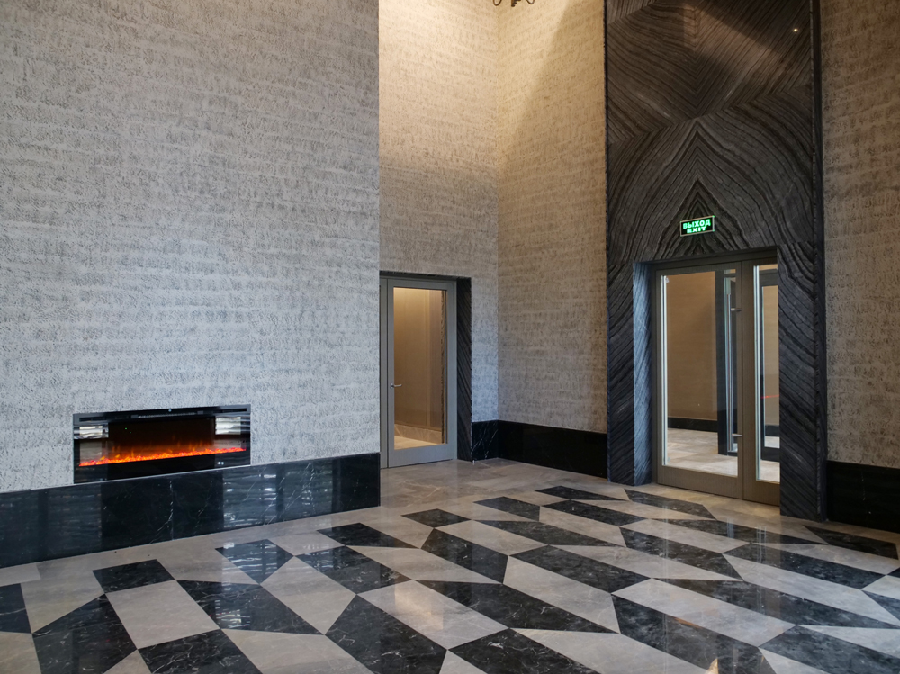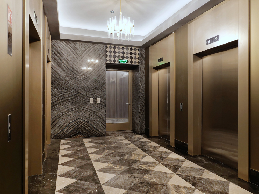 В каждом подъезде установлены современные бесшумные лифты, грузоподъемные и пассажирские. Внутренняя отделка выполнены в едином стиле, с просторными холлами и высокими потолками.