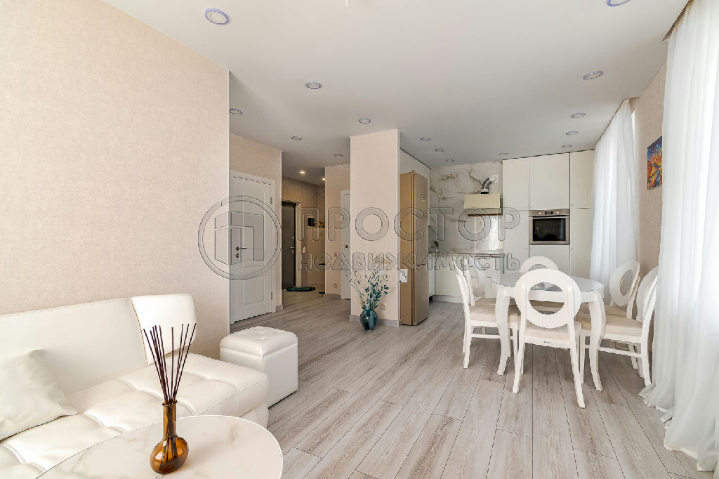 При общей площади квартиры в 51.8 кв. м. в ней грамотно использован каждый сантиметр. Все эргономично, уютно и удобно, ремонт делали с любовью и вниманием к каждой детали. Все, что Вы видите на фото, остается в квартире. Планировка предполагает размещение кухни-гостиной, спальни, с/у и вместительной гардеробной. В квартире выполнен качественный дизайнерский ремонт, Вам не придется тратить время и средства на дополнительные вложения просто заезжайте и живите.